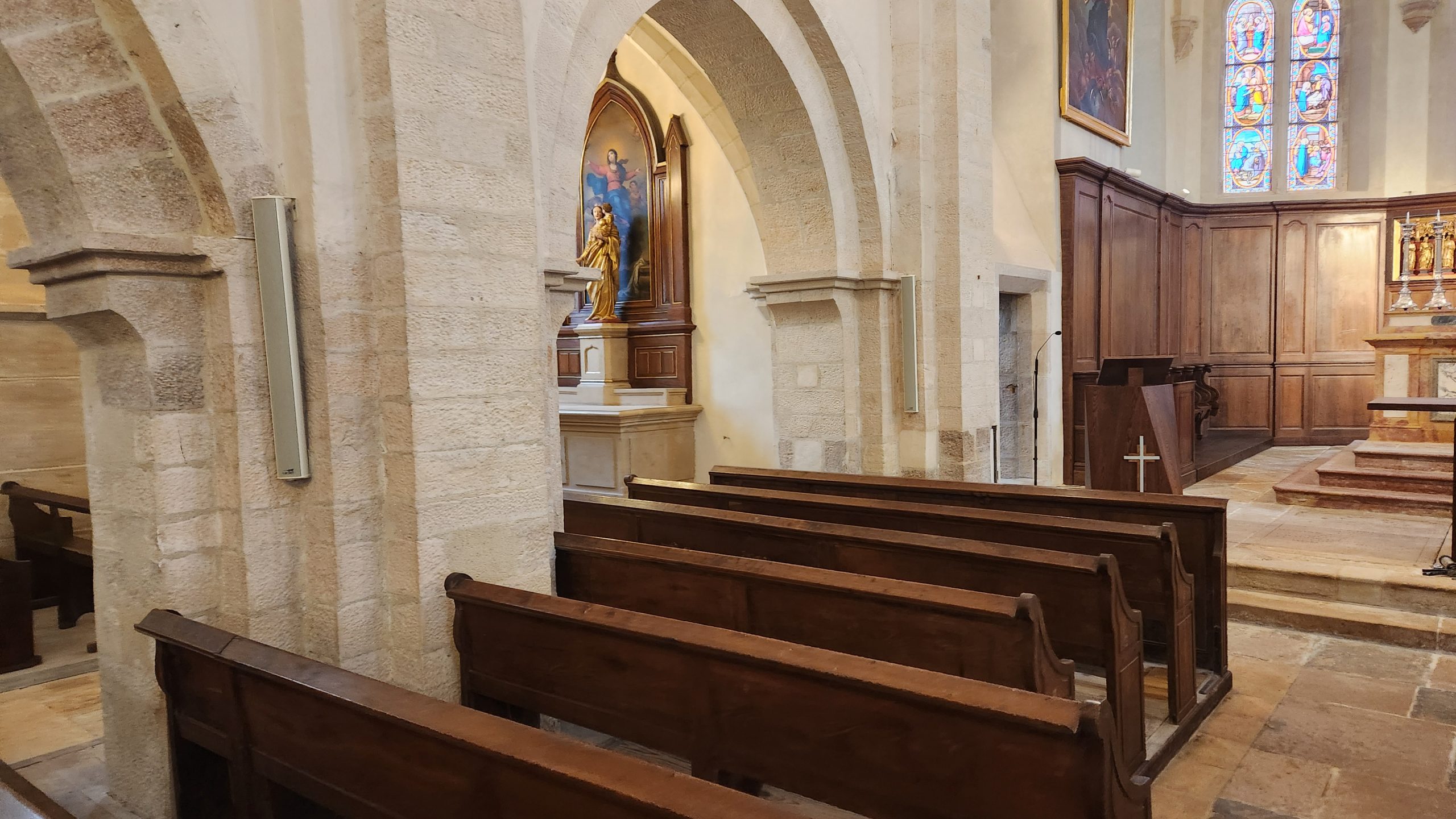 Pour la partie sonorisation, de nouveaux équipements telle que de nouveaux micros, de nouvelles colonnes acoustiques, situées dans la Nef, le Choeur, ainsi que sur les côtés nord et sud, ont été installées dans cette somptueuse église. De plus, la pose d’un nouvel ampli de puissance permet la régularisation du son, et ainsi obtenir une parfaite sonorité.